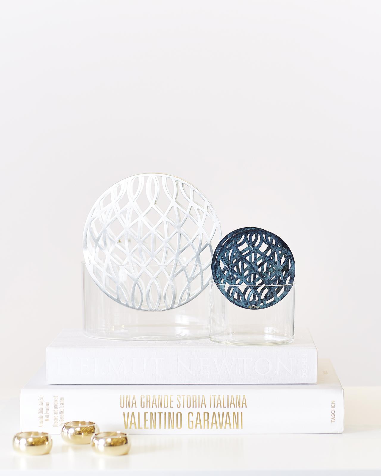 Äng är en rund vas formgiven av eva schildt för det svenska varumärket klong. Äng ger oss möjligheten att arrangera blommor på ett nytt sätt. Äng vas liten från klong silver. Vasen är tillverkad i blågrön mässing med tillhörande glasinsats. Den utskurna mässingsinsatsen fungerar som ett inbyggt blomserstöd. Äng är en populär och fantastiskt snygg vas från klong, formgiven av den svenska designern eva schildt. Vasen äng från klong har en metallställning som dekoration och stöd åt dina blommor. Äng ger oss möjligheten att arrangera blommor på ett nytt sätt. Äng ger oss möjligheten att arrangera blommor på ett nytt sätt. Vasen äng i en mindre utgåva. I runt utförande finns äng i tre storlekar men den finns även som rektangulär. Klong äng vas liten mässing storlek: Placera ut blommorna efter eget tycke och smak och.